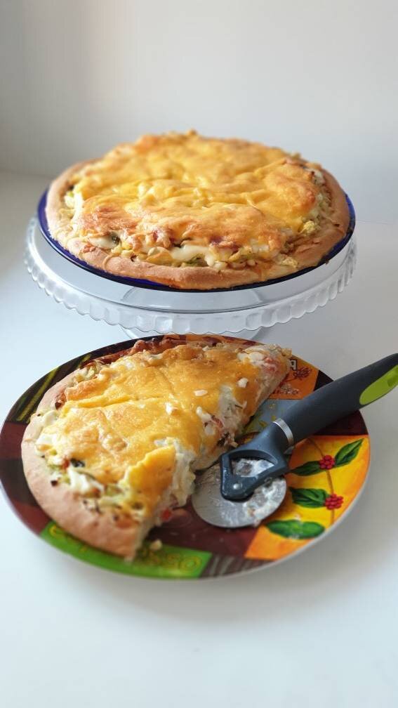 Идеальное тесто для пиццы и довольно быстро готовится #пицца Ингредиенты: муки, сухих дрожжей, соли, сахара , растительного или оливкового масла, тёплой воды Способ приготовления: Просеять муку, добавить дрожжи, сахар, соль. Всё хорошо перемешать. В тёплую воду добавить растительное масло и перемешать до однородности. Добавить к мучной смеси. Вымешиваем тесто до тех пор пока перестанет липнуть к рукам, можно немного добавлять ещё муки. Закрываем тесто полотенцем и ставим в тёплое место на 40-45 минут. Я ставлю в духовку разогретую до 40 градусов. Раскатать тесто, у меня из этого количества получается 2 средних круглых пиццы. Дать ещё немного подняться тесту, проколоть вилкой. Можно выкладывать начинку. Всё зависит от вашей фантазии. Выпекаем минут 30 при температуре 190-200 градусов.