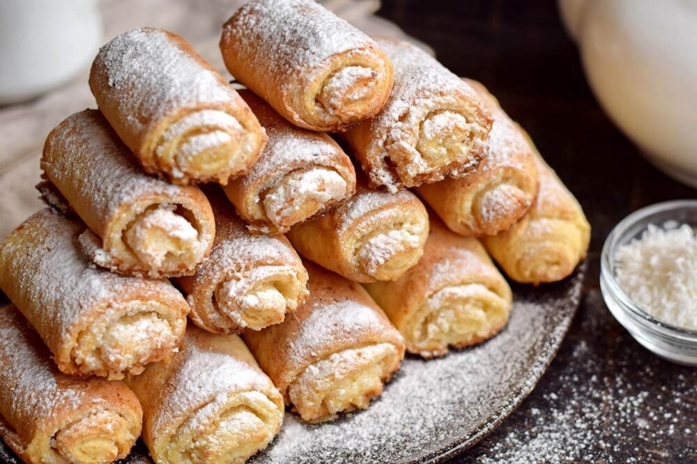 - Творожное печенье получается хрустящим снаружи и мягким, с ярким вкусом и ароматом кокоса внутри.Готовим вкусные творожные печенье с кокосовой начинкой. Творожное тесто замешивается очень просто, с ним приятно работать, оно легко раскатывается, не пристает к рукам. Творог лучше взять мягки. Для начинки берем покупную кокосовую стружку и сахар, при этом в тесто сахар не добавляется. Творожное тесто просто великолепно сочетается с ароматной кокосовой начинкой. Печенье запекаются очень быстро, главное их не пересушить, тогда они будут мягкими и нежным. Такое полезное дополнение к чаю отлично подойдет в качестве завтрака или перекуса.