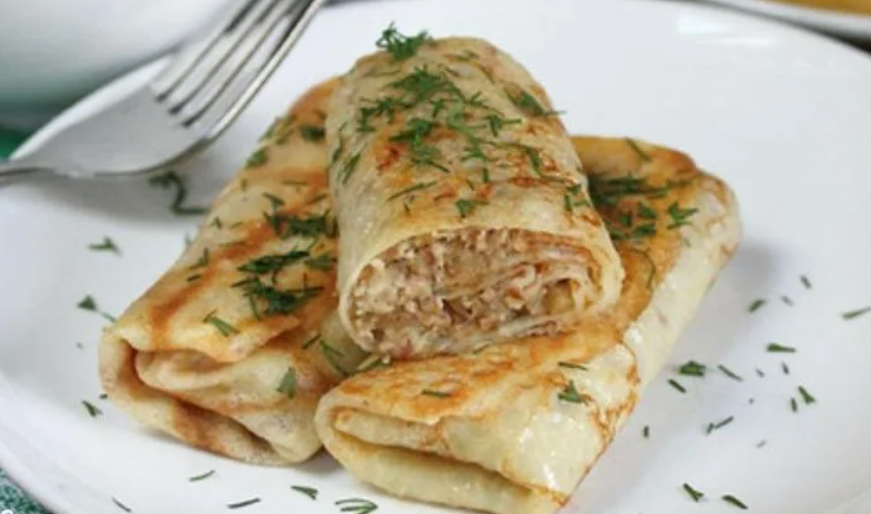 Блины просто объедение Блины из заварного теста. Блины получается очень вкусные и бархатные. Ингредиенты: Для теста: - 1,5-2 стакана пшеничной муки, - 2 стакана молока, - 1 стакан кипятка, - 3 куриных яйца, - 0,5 ч.л.соли, - 1,5 ст л. сахара, - 2 ст.л.растительного масла, Для начинки: 400 г фарша (свинина с курицей), 1 головка репчатого лука, соль, приправа, перец по вкусу, Приготовление: 1.В миску разбиваем 3 яйца. Взбиваем венчиком до однородной консистенции, примерно 2 минуты. Ко взбитой яичной массе добавляем соль, сахар и молоко все перемешиваем. Постепенно подсыпаем 1,5 стакана просеянной муки, перемешиваем венчиком очень тщательно чтобы не было комочков. Добавляем стакан молока и 3 ст.л.растительного масла и все перемешиваем. В самом конце вливаем стакан кипятка все тщательно перемешиваем. Кипяток заваривает муку, и блинчики получаются плотные. 2.Ставим сковороду на огонь. Смазываем ее маслом наливаем немного теста и распределяем по всей сковороде. Обжариваем блинчик с одной ст