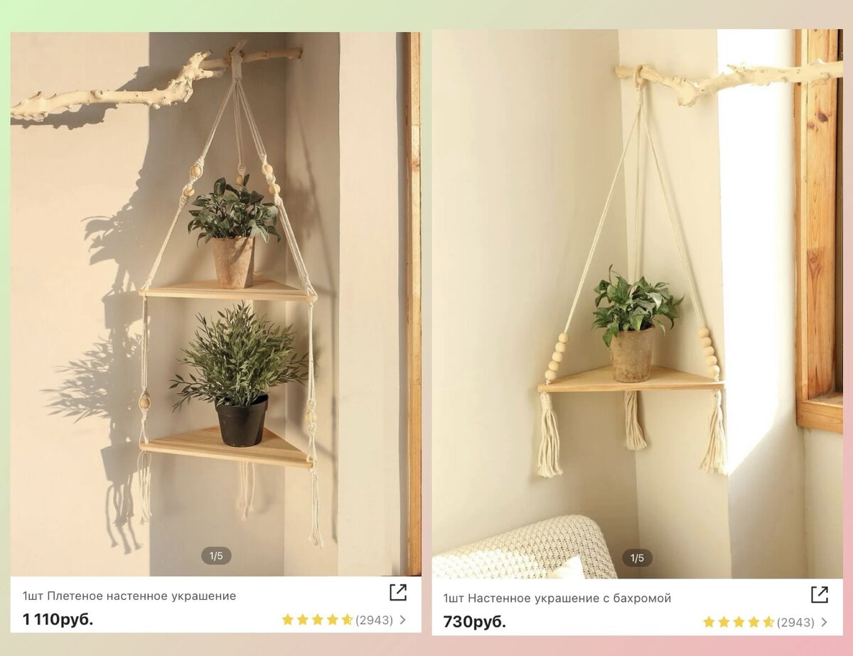 По моему личному мнению, Алиэкспресс очень испортился. Последнее время у меня с ним возникали постоянно какие-то проблемы. 2 раза приходили разбитые вещи, я открывала спор и просила вернуть деньги. Естественно, мне их так никто и не вернул. Еще один заказ оплачен и отправлен, но на почту по неведомым причинам не приходит, якобы продавец отменяет доставку в отделение почты России по непонятным причинам. Пишу продавцу – в ответ молчание. Совершенно непонятная ситуация. К тому же, лично мне не удобно, что сейчас там цены часто показаны в долларах, а не в рублях. Некоторые разделы перестали работать. Не знаю, это только у меня так или у вас тоже? Напишите, пожалуйста, в комментариях как у кого дела с этим сайтом. Ну а я тем временем мониторю Шейн и нахожу там много классных вещей. Вот, например, очень уютные, приятные вещи для дома, которыми хочу поделиться с вами: 1. Угловая полочка с плетением, которая украсит любой уголок и добавит изысканности в интерьер. Стильная, пахнет деревом. Мож