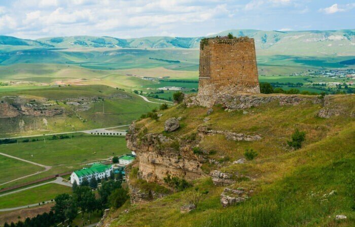 Башня Адиюх самая известная сторожевая башня Черкесии находится на берегу Малого Зеленчука на вершине небольшого утеса в Хабезском районе КЧР. В былые времена здесь находились защитники городища, дозорные и коротали заключение пленники. А на верхушке при приближении врагов разводили сигнальный костер. Вход внутрь оборудован на уровне второго этажа, первый уровень был отведен под хранение припасов. Пятиэтажное здание построили в XVIII веке для защиты от вражеских набегов. Адиюх является единственным сохранившимся элементом большой крепости, полностью разрушенной войнами и временем. Легенда же повествует совсем другую историю появления башни. Ее построил нарт Сосруко в честь девушки Адиюх, которую хотел увезти в далекие края, но по дороге та погибла. Для нее он и возвел сооружение, чтобы навеки упокоить возлюбленную.