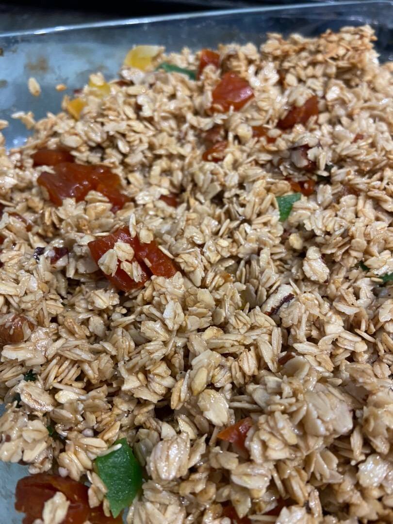 Я всегда покупала в магазинах гранолу, но теперь приготовила сама🔥 Смешивая ее с питьевым йогуртом или обезжиренным кефиром….ммммм…вкуснятина🤪 Ингредиенты: Геркулес, Мёд, ст. ложки масло подсолнечное, Орехи (любые), Сухофрукты (любые) Способ приготовления: Разогреваем духовку до 150 градусов. Высыпаем в большую емкость геркулес и смешиваем с мёдом (у меня остатки старого, я растопила в микроволновке). И добавляем масло. Всё перемешиваем тщательно. Добавляем орехи любые, если у вас есть и всё перемешиваем. Выкладываем на противень и перемешивая каждые 7 минут жарим всё это ~35 минут. Нарезаем сухофрукты какие есть (у меня это курага, киви и дыня). По окончанию добавляем сухофрукты к смеси и выключаем духовку. Оставляем это всё там. Спустя несколько часов всё затвердеет. P.S. Это уже так вкусно, что можно слепить сейчас парочку печенек из этого и позже слопать😍🤪. Такую гранолу можно хранить до двух неделю в банке и использовать в качестве перекуса или полноценного завтрака с кефиром,