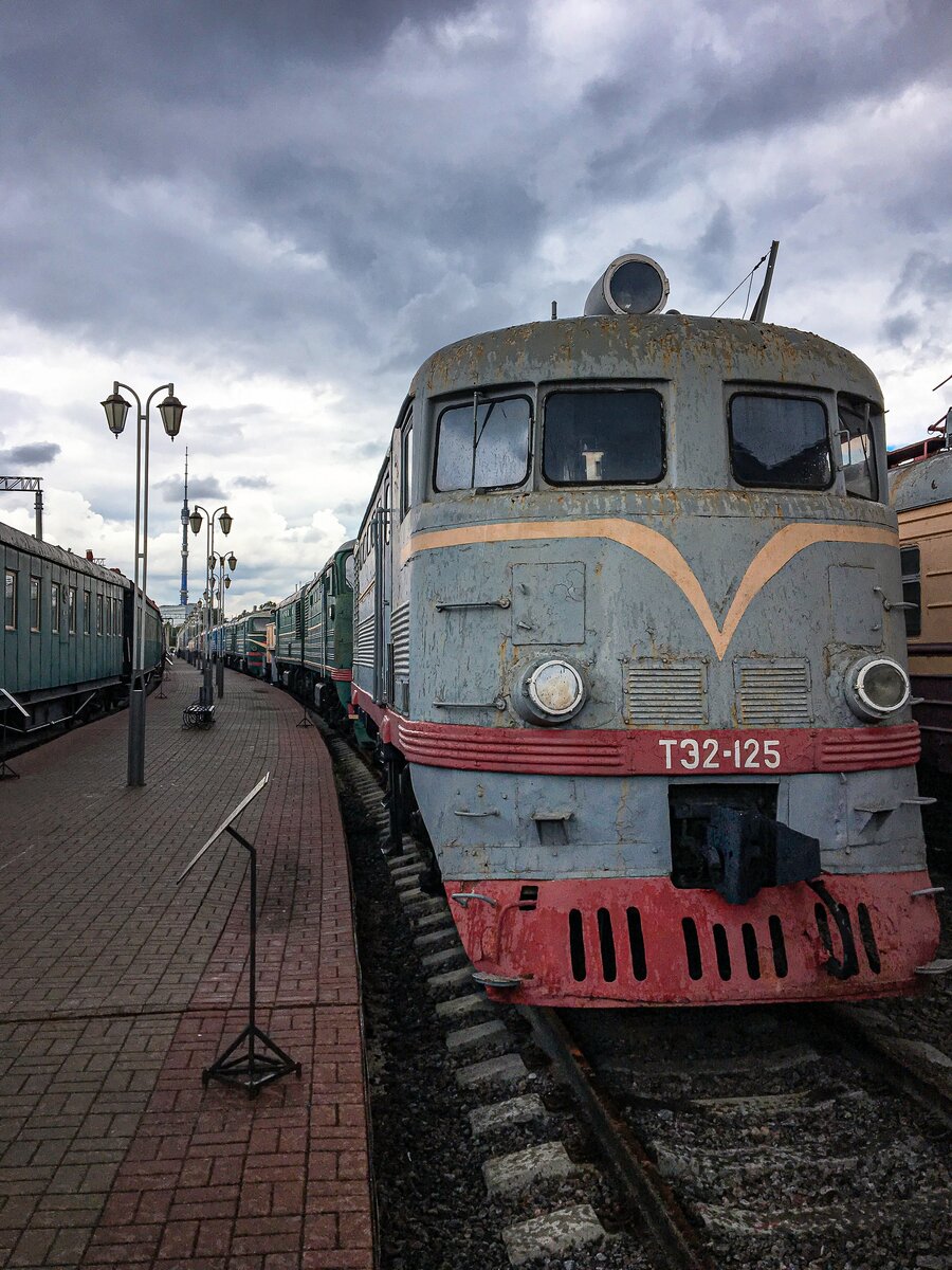 На Рижском вокзале Москвы находится одно из самых интересных мест для любителей механизмов и транспорта. Здесь поставлены на вечную стоянку десятки уникальных экземпляров железнодорожной техники. И к концу этого текста, я уверен, что эти герои вам перестанут казаться кусками металла. Честно говоря, у меня самого никогда и мысли не было, что у электровоза может быть какой-то характер или эмоция. Конечно называть это место кладбищем будет преувеличением. Все-таки это вполне официальный "Музей железнодорожного транспорта на Рижском вокзале". Огромный — в полтора гектара. Но ощущение, что эти монстры-трансформеры никогда уже не сдвинутся с места не пропадает. Поэтому и появляются подобные ассоциации. Здесь свой покой нашли более 70 различных экспонатов: паровозы, электровозы, санитарные вагоны, спецтехника. Даже есть вагон-танк, вагон-кухня и вагон-салон для особо важных персон. Причем некоторые экземпляры техники имеют специальные награды. Представляете? Награды у поезда! Но даже у красав
