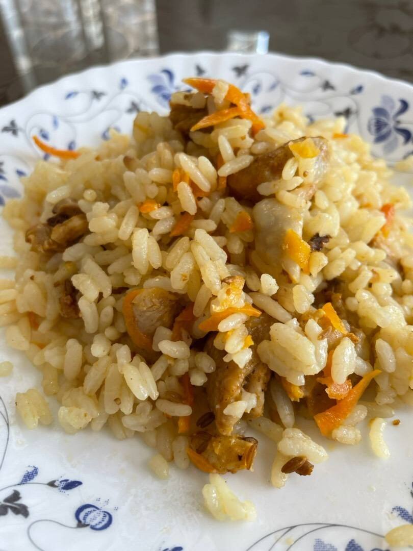 Этот плов ну просто находка! Готовить легко, невероятно вкусный и рассыпчатый, с нежным мясом, не навредит вашей фигуре! #пп Ингредиенты: рис пропаренный, воды, голень куриная, лук репчатый, чеснок, приправа для плова, растительное масло, Соль Способ приготовления: Обрезать мясо с голеней, порезать на небольшие кусочки, натереть крупно морковь, порезать лук и измельчить чеснок. Добавить специи для плова и соль (учитывайте есть ли соль в приправе). Хорошо перемешать Подготовить рукав для запекания. Промыть рис, выложить в рукав. Добавить масло растительное и 1 ст.л приправы и соль, хорошо перемешать и распределить по пакету. Сверху на рис выкладываем мясо с овощами. Наливаем воду и завязываем пакет, делаем сверху маленький прокол зубочисткой в пакете. Выпекаем 40 мин при 200 С (до испарения воды).