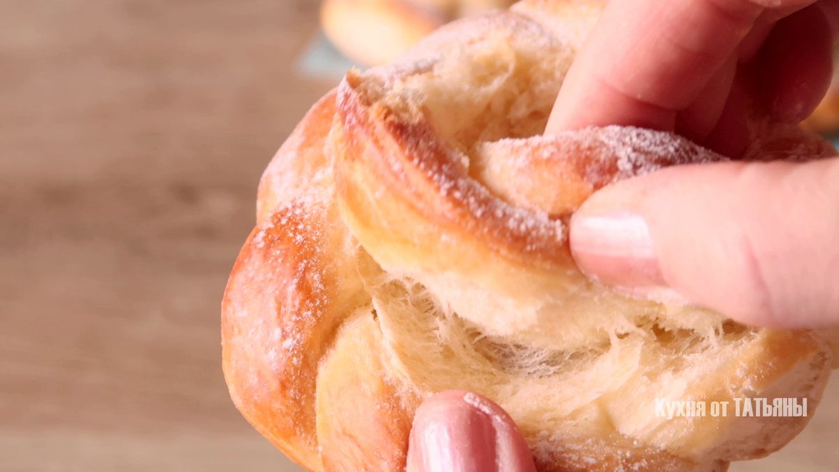 Даю булочкам полностью остыть и посыпаю сверху сахарной пудрой.