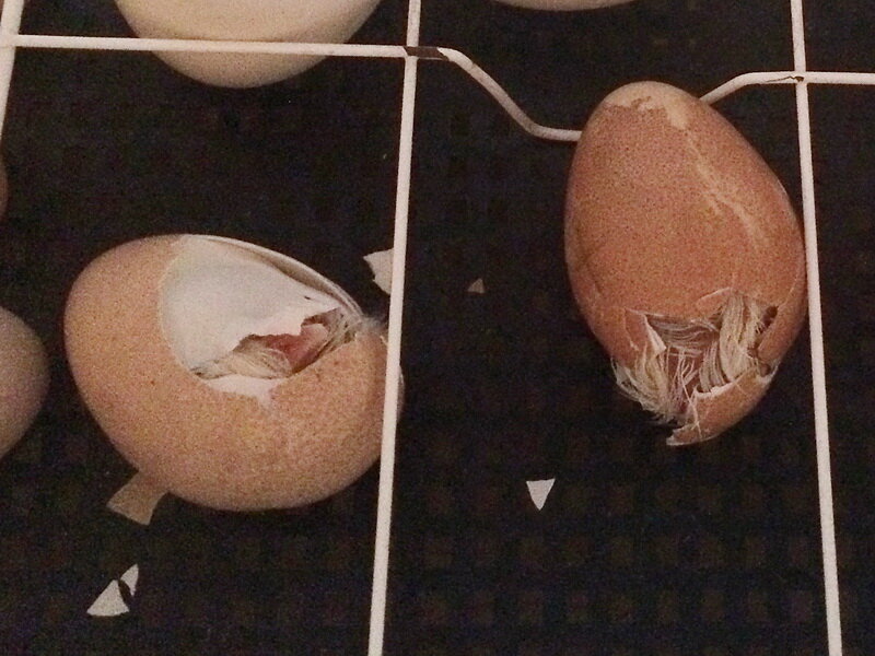 Яйца были собраны ещё до переезда. Причём сроки закладки не выдержаны - получилось, что яйца хранились дольше положенного, поскольку мы перевезли птицу и некоторые вещи на арендованном прицепе и нам пришлось сразу разворачиваться и возвращать прицеп. На эти перемещения ушла ещё неделя. А закладывать яйца в своё отсутствие не хотелось. Во первых, пришлось бы напрягать посторонних. не имеющих ни какого представления об инкубации, людей. А во-вторых, в нашей рязанской деревне есть один существенный недостаток, он же и преимущество в некоторых случаях - её расположение в глухом лесу, где частые случаи повреждения электропроводов - дерево повалило ветром или от старости и нет электроэнергии, причём возможно и надолго - пока среди километров леса найдут обрыв, да и не всегда к этому обрыву легко добраться - места то у нас болотистые. Не каждый аккумулятор может выдержать столь длительное отключение электроэнергии. И бывает, нужно использовать совсем экстренные меры - например воду греть и в маленьких бутылках в инкубатор подкладывать, да менять бутылки по мере остывания. В общем, экстрим ещё тот)))