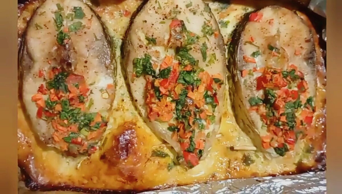 Порционные стейки легко фаршируются и быстро запекаются. У пеленгаса нет мелких костей, а мякоть отличается особой мягкостью. Для вкусового разнообразия кладут немного овощей. Запеченного пеленгаса можно подать на ужин, стейки с овощами – это легкая и полезная еда. Понадобится: 🔸пеленгас – 1,3 кг; 🔸яйца – 5 шт.; 🔸морковь – 1 шт.; 🔸болгарский перец – 1 шт.; 🔸соль – 1 ч. л.; 🔸зерна кориандра – 1 ч. л.; 🔸черный горошек – ½ ч. л.; 🔸подсолнечное масло – 1 ст. л.; 🔸укроп – 3 стебля. ✅Рецепт приготовления 📌📝Красивые стейки можно получить только из крупной тушки пеленгаса, не годятся рыбки, которые весят менее килограмма.📝📌 1. С пеленгаса снимают чешую, затем отрезают голову. Внутренности вынимают, не разрезая брюшко. Плавники не трогают. 2. Тушку пеленгаса моют и нарезают кусочками, толщина нарезки – 2-2,5 сантиметра. 4. Стейки пеленгаса посыпают щепоткой соли, а затем обильно притрушивают кориандром. Используют свежий помол пряностей. 5. Разбивают яйца, доб