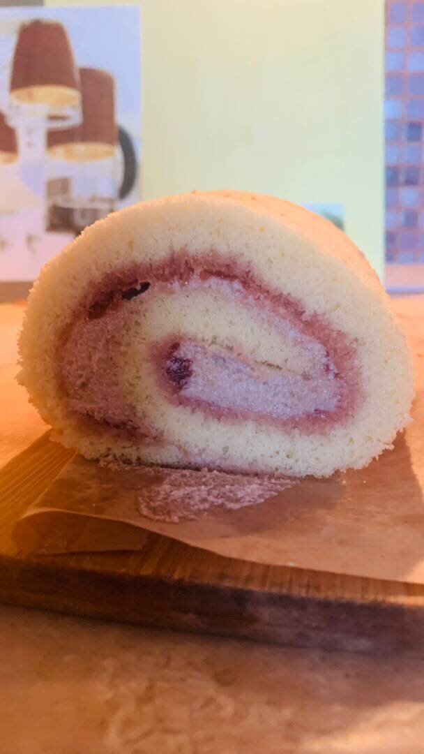 Рулет с клубничным вареньем и шоколадно-пломбирным заварным кремом