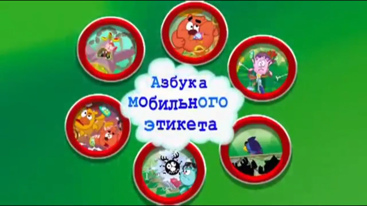 Привет!Каждый ярый фанат Смешариков должен знать о азбуке,которая так и не вышла и к сожалению не удалась,а именно "Азбука мобильного этикета."Я поговорю о всех трёх эпизодах которые есть в сети и сделаем вывод о этой азбуке.Давайте же начнем :) Эпизод первый Сюжет первый: Крош разговаривал по телефону рядом с медицинским аппаратом где был Лосяш и от этого произошло короткое замыкание. Сюжет второй: Лосяш и Копатыч разговаривали по телефону когда ехали на машинах и не смотрели на дорогу,из-за чего друг в друга врезались. Сюжет третий: Нюша заскучала во время полета на самолёте с Пином и решила поговорить по телефону,но из-за этого самолёт сбился с курса и упал. Эпизод второй Сюжет первый: Карыч показывает всем выступление с фокусами,но тут Барашу начинают звонить,а затем и всем остальным Смешарикам и из-за этого Карыч обиженный уходит со сцены. Эпизод третий Сюжет первый: Копатыч разговаривает по телефону и ест плюшки с медом,но тут он нечаянно мокает в мед телефон и его кусает. Сюжет