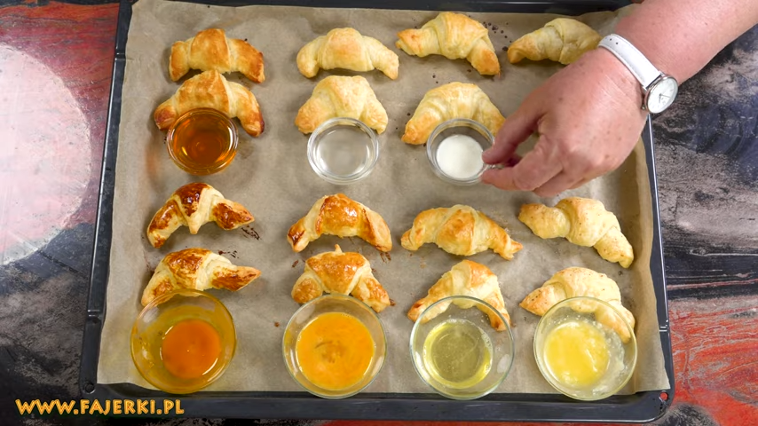 Nat Ura I. Смазать тесто яйцом - взбитым/взбитым - выпечка засияет. II. Яичный желток с небольшим количеством соли - Тщательно взбить, добавить щепотку соли - выпечка будет иметь румяный цвет. III. Яичный белок со щепоткой соли — тесто не станет коричневым, но будет красиво блестеть. IV. Оказывается, когда у нас закончатся яйца в холодильнике, мы можем намазать их молоком. Это сделает тесто очень хрустящим. V. Нашу выпечку – например, круассаны или булочки – тоже можно смазывать растопленным сливочным маслом. Он смочит верх слоеного теста и будет еще вкуснее. VI. Намазанные медом, они имеют блестящую гладкую корочку и вкусно пахнут медом. VII. Чем обмазать тесто, чтобы корочка была мягкой и не слишком темной? Для этого подойдет обычная питьевая вода с солью. VIII. Он бледный и немного сухой, как не царапанное слоеное тесто.