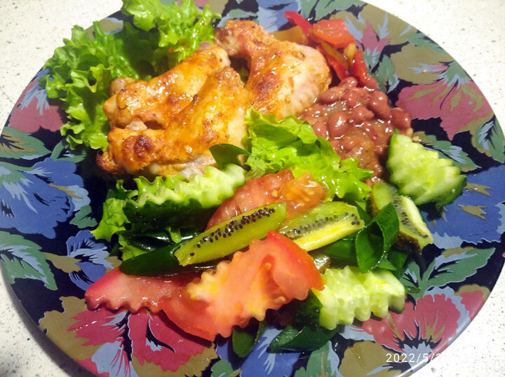 На обед решила приготовить крылышки. Я их запекала. Крылышки промыть, подсушить и обработать специями. У меня это пряная соль, красная паприка, грузинская аджика. Запекать при температуре 180 г ~ 30 минут, ориентироваться по своей духовке. А к ним - овощной салат. Ингредиенты: ✓ Огурец - 1/2 шт