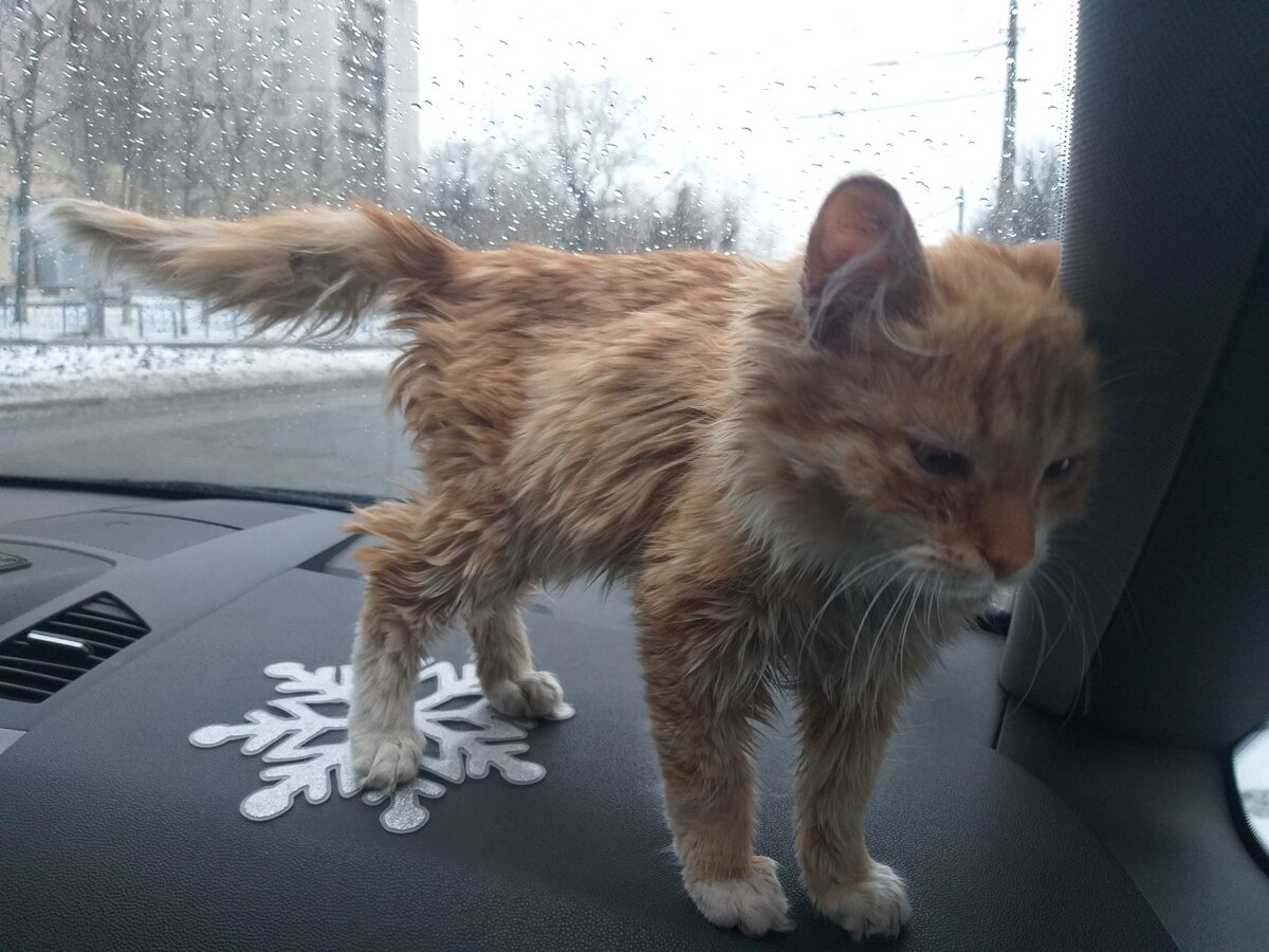 На это создание невозможно было смотреть, просто сочувствие бы не помогло, надо было спасать. В группке пушистых хвостиков, где были и взрослые, и котята, эта рыжая малышка выделялась: истощенная, виден даже хребет, шерсть в ужасном состоянии, гной в воспаленных глазах. Она кричала, так просила кушать. Это было возле КПП Станица Луганская (сейчас это освобожденная территория), если идти со стороны ЛНР. Котенок не уходил, крутился рядом, как будто просил о помощи. Нашла коробку - посадила туда малышку, хорошо, что с собой был скотч, обмотала коробочек. Пройдя КПП, уселись в машину и поехали в Луганск. Малая - просто чудо, очень компанейская девчонка. В машине самостоятельно выбралась из коробки, ходила везда, так и ездили по городу с ней. Сначала Симона была на платной передержке, пока не освободилось место в приюте. Рыжушка, видимо, долго голодала, поначалу она ела за семерых, был повышенный аппетит. Скорее всего было переохлаждение, отсюда и воспаленные гнойные глаза. Начали лечени