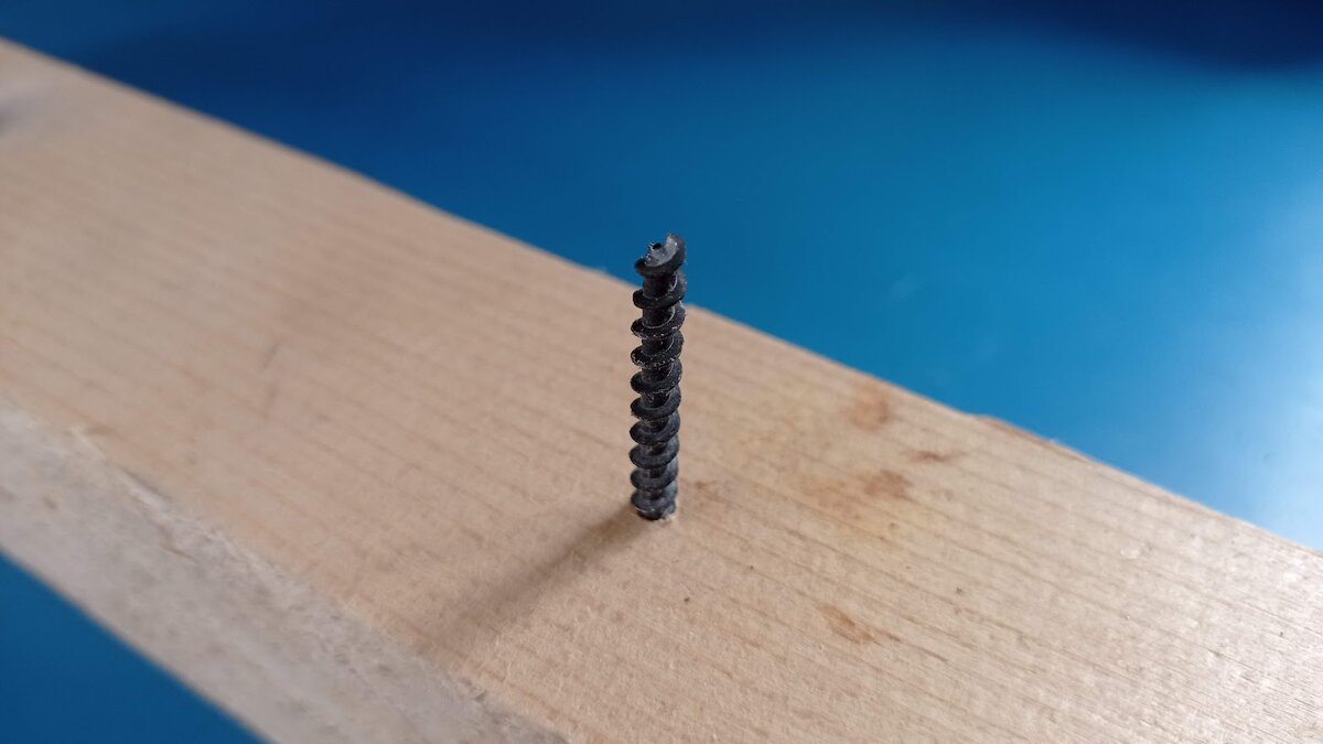 Я взял саморез на 25 мм и вкрутил его в отрезок бруса так, что бы шляпка выступала на 15 мм. Все разметочное приспособление готов