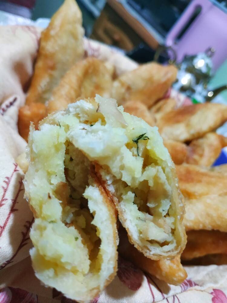 #непп #пирожки Ингредиенты: теста, отварных картофелин, обжаренных грибов, репчатого лука, Зелень , Соль, специи , масла для обжарки овощей, для жарки пирожков Способ приготовления: Грибы нарезать тонкими полосками или на свое усмотрение. Обжарить до готовности. Отдельно обжарить лук. Отварной картофель, перебить в пюре. Соединить грибы лук и пюре, специи. По желанию можно добавить свежей зелени. У меня укроп. Тесто разделить на небольшие шарики. Раскатать как на пирожки и начинить начинкой. Края слепить придавая форму лодочек. Обжарить на раскалённом масле до золотистого цвета с двух сторон. У меня из этого количества теста и начинки получилось 25 пирожков, небольших. Готовьте с удовольствие для родных и близких.