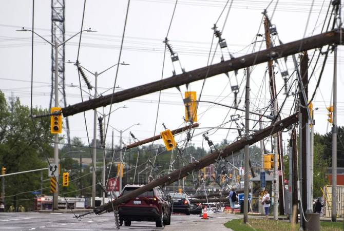 В результате урагана, обрушившегося в субботу днем на две самые густонаселенные провинции Канады - Онтарио и Квебек - погибли, по меньшей мере, восемь человек, более 500 тыс. жителей лишены электричества. Как передает Арменпресс, об этом сообщают местные СМИ со ссылками на власти. Как отмечают коммунальные службы, порывы ветра, скорость которых превышала 130 км в час, валили деревья, столбы и опоры линий электропередач. По сообщениям властей, причиной большинства смертельных травм стало падение деревьев. Энергетики в воскресенье приложили максимум усилий к восстановлению энергоснабжения. Канадский премьер Джастин Трюдо заявил, что федеральное правительство готово помочь нуждающимся и пострадавшим. "Мы думаем обо всех пострадавших и благодарим бригады, которые работают над восстановлением электроснабжения", - написал Трюдо в твиттере в воскресенье.