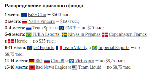FaZe Clan стала чемпионом PGL Major Antwerp 2022 по CS:GO. В финале она победила Natus Vincere со счетом 2:0 — 19:16 на Inferno и 16:10 на Nuke. За первое место команда Финна karrigan Андерсена заработала $500 тыс. На пути к решающему матчу NAVI обыграли в плей-офф Heroic и ENCE. FaZe Clan в четвертьфинале одолела Ninjas in Pyjamas, а затем в полуфинале победила Team Spirit. PGL Major Antwerp 2022 прошел с 9 по 22 мая в Антверпене, Бельгия. Команды разыграли призовой фонд в размере миллиона долларов.