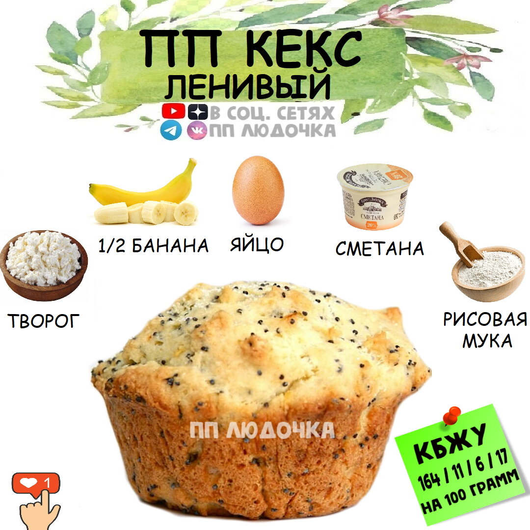 ЛЕНИВЫЙ И БЫСТРЫЙ ПП КЕКС В МИКРОВОЛНОВКЕ ЗА 5 МИНУТ🍌🤤 Кекс с творогом и бананом получается очень нежный и вкусный, тающий во рту 🤤 Наш кекс, приготовленный на банановой основе — без сахара. При этом достаточно сладкий и ароматный!🔥 📝 КБЖУ на 100 г. = 164 / 11 / 6 / 17 ⭐️ Сложность (1 из 5) ⏰ Время приготовления: 5-7 минут ✅ ИНГРЕДИЕНТЫ: 🍌 70 г творога; 🍌 1 яйцо; 🍌 половина спелого банана (он даст сладость); 🍌 1 столовая ложка кефира/сметаны/йогурта; 🍌 1-2 ложки рисовой муки (ориентируйтесь по влажности творога); 🍌 1 чайная ложка мака; 🍌 разрыхлитель - 1/2 чайной ложки; 🍌 щепотка ванили; ✅ ПРИГОТОВЛЕНИЕ: Мак заливаем кипятком и оставляем на 5 минут. Берем блендер, взбиваем творог, яйцо, банан, кефир и муку с разрыхлителем. Добавляем щепотку ванили. Взбиваем до однородности, но тесто не должно быть очень густое. Добавляем мак в тесто и хорошо перемешиваем. Кружку/стакан/формочку смазываем каплей растительного масла и выливаем тесто. Емкость должна быть заполнена тестом