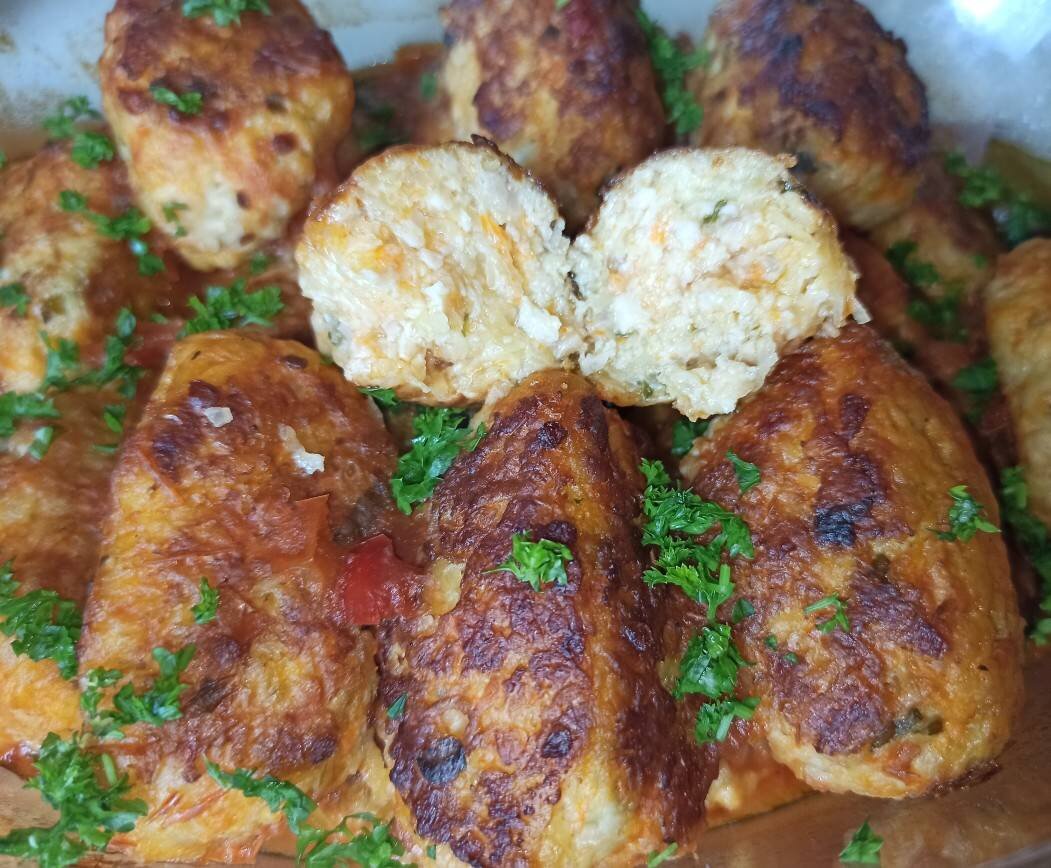#вишиванка Привычные нам тефтели готовят с рисом...а я хочу, предложить вариант с картофелем. Получается тоже очень вкусные, сочные, нежные и при этом економные и простые в приготовлении.🤤👍 Вместо томатной пасты можно использовать томат или вовсе заменить сметанным соусом. Так же эти тефтели можно готовить просто как обычные котлеты, просто после приготовления немного потушить под крышкой с добавлением не большое количества воды. Ингредиенты: фарш, картофель (вес очищенного), лук, морковь, томатная паста, вода, сахар, соль, специи, лавровый лист по вкусу и желанию Способ приготовления: Картофель очистить. Натереть на мелкой тёрке. Сок отжимать не нужно. Лук нарезать и обжарить на растительном масле до прозрачности, добавить морковь и тоже слегка потушить. Соединить прожаренные овощи, картофель, фарш, посолить, поперчить и хорошенько перемешать Далее формируем тефтели. Обжариваем их по быстрому, на достаточном сильном огне, до румяного цвета...но НЕ до готовности. Выкладываем в форму