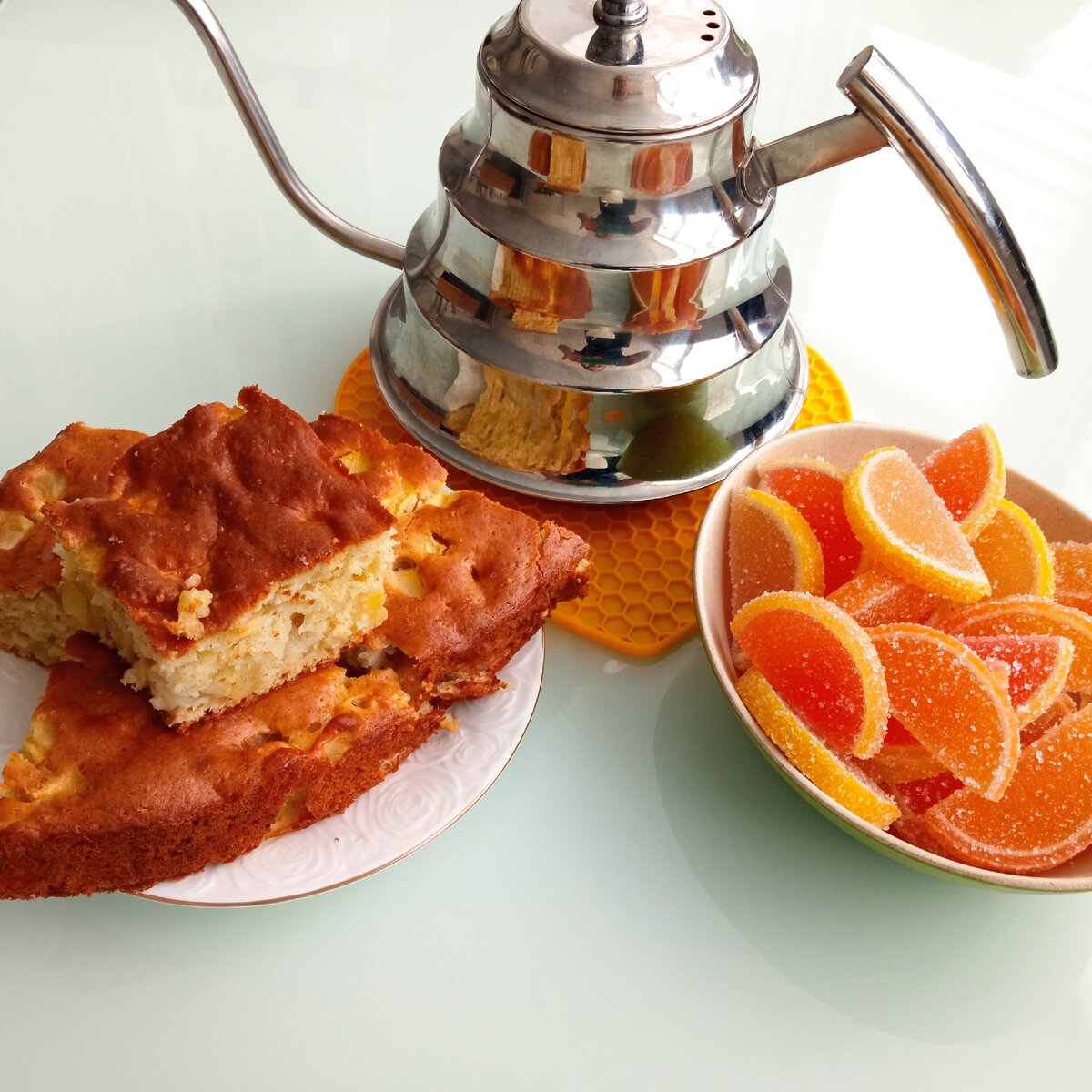 Рецепт этого пирога очень прост. Готовится он быстро, из доступных и не дорогих продуктов. Очистим и нарежем небольшими кубиками яблоки. Сразу приготовим форму для выпечки. Возьмите любую, какая у вас есть, диаметром, примерно 26-28 см. Смажьте форму сливочным маслом и слегка посыпьте мукой. Можно воспользоваться силиконизированным пергаментом. В этом случае форму не нужно дополнительно смазывать. Включим духовку на разогрев на 180 градусов. Выпекать будем на режиме "верх-низ". В чашку для приготовления теста, выбьем яйца. С помощью миксера слегка взобьём их с сахаром. Добавим сметану. Я брала смесь из домашней простокваши и сметаны. Посолим и хорошо перемешаем. В просеянную муку положим соду. Перемешаем. Замесим тесто, добавляя муку небольшими порциями. Теперь добавим подготовленные яблоки, и ещё раз хорошо перемешаем. Выкладываем тесто в форму, разравниваем его и ставим в нагретую духовку, на средний уровень. ИНГРЕДИЕНТЫ ДЛЯ ПИРОГА: Пирог готов. Выпек