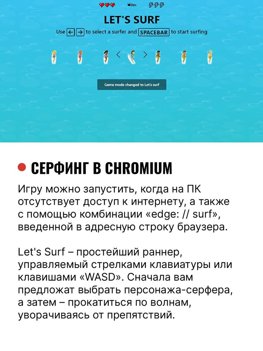 Неожиданно отключили интернет или просто станет резко скучно? Для этого случая некоторые популярные браузеры припрятали в себе «пасхальные яйца» в виде простеньких игр. Мы расскажем, как их можно найти. Уже играли в какие-то из этих игр? Попробуете? 📌 Чтобы поддержать работу нашей редакции, подпишитесь на наш канал, так мы сможем продолжить радовать вас полезным контентом.