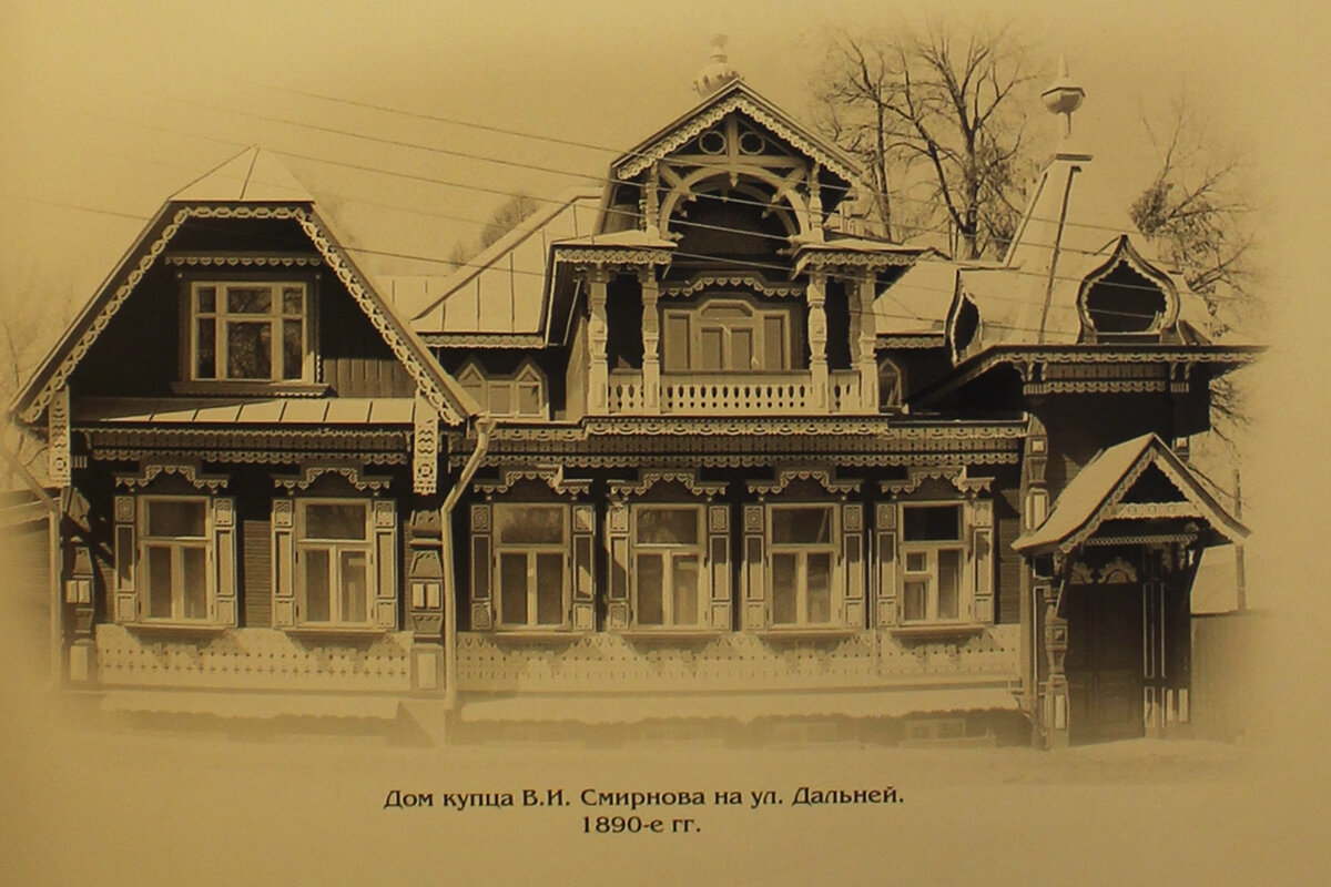 В то время, когда я был в музее-усадьбе С.М. Рукавишникова в Нижнем Новгороде, в одном из его залов увидел старую фотографию красивого дома, расположенного в означенном населённом пункте. Музей я посетил в предпоследний день своей поездки... И все самые интересные строения (они были у меня заранее отмечены) уже осмотрел. Как думал... Но нет! Благодаря музейной экспозиции обнаружил новый адрес и решил непременно до него добраться! Хотя у меня были сомнения. Вдруг здания уже нет... Несмотря на то, что дом оказался на месте, мои опасения всё-таки были не напрасны. И сейчас я расскажу вам почему. Но начну с исторической справки. Дом купца В.И. Смирнова — памятник архитектуры. Был возведён на этом месте в конце 1890-х годов. Автор проекта не установлен. Здание было выстроено в русском стиле, подражая деревянным постройкам Ивана Павловича Ропета (русского архитектора с настоящим именем Иван Николаевич Петров). Пару слов о владельце дома. Василий Иванович Смирнов — нижегородский купец 2-й