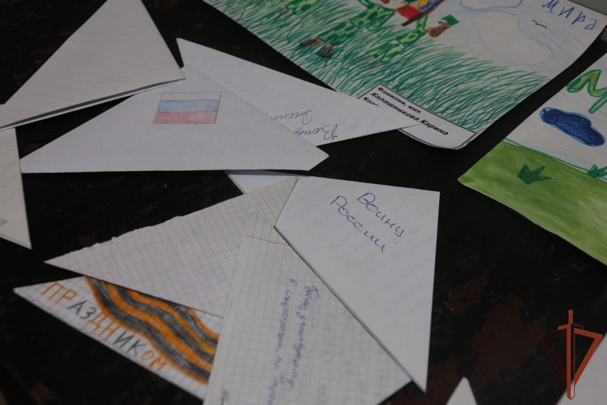 В Харьковской области военнослужащие и сотрудники Росгвардии, участвующие в специальной военной операции на Украине, получили письма и рисунки от школьников из разных городов России. В каждом послании - слова благодарности и поддержки.
