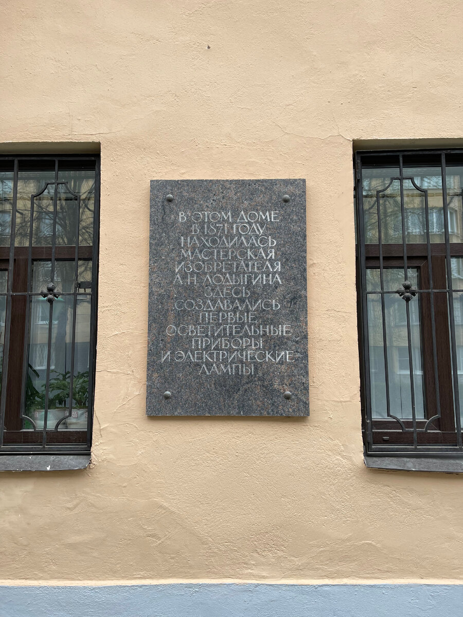 В 1873 году на маленькой и неприметной улочке вблизи Смольного собора произошло настоящее чудо, которое навсегда изменило облик улиц всех городов мира. Александр Лодыгин изобрёл «угольные» лампы накаливания. Петербуржцы были настолько заинтересованы новым изобретением, что на демонстрацию ламп приходили с газетами, чтобы проверить, достаточно ли они излучают света для чтения.