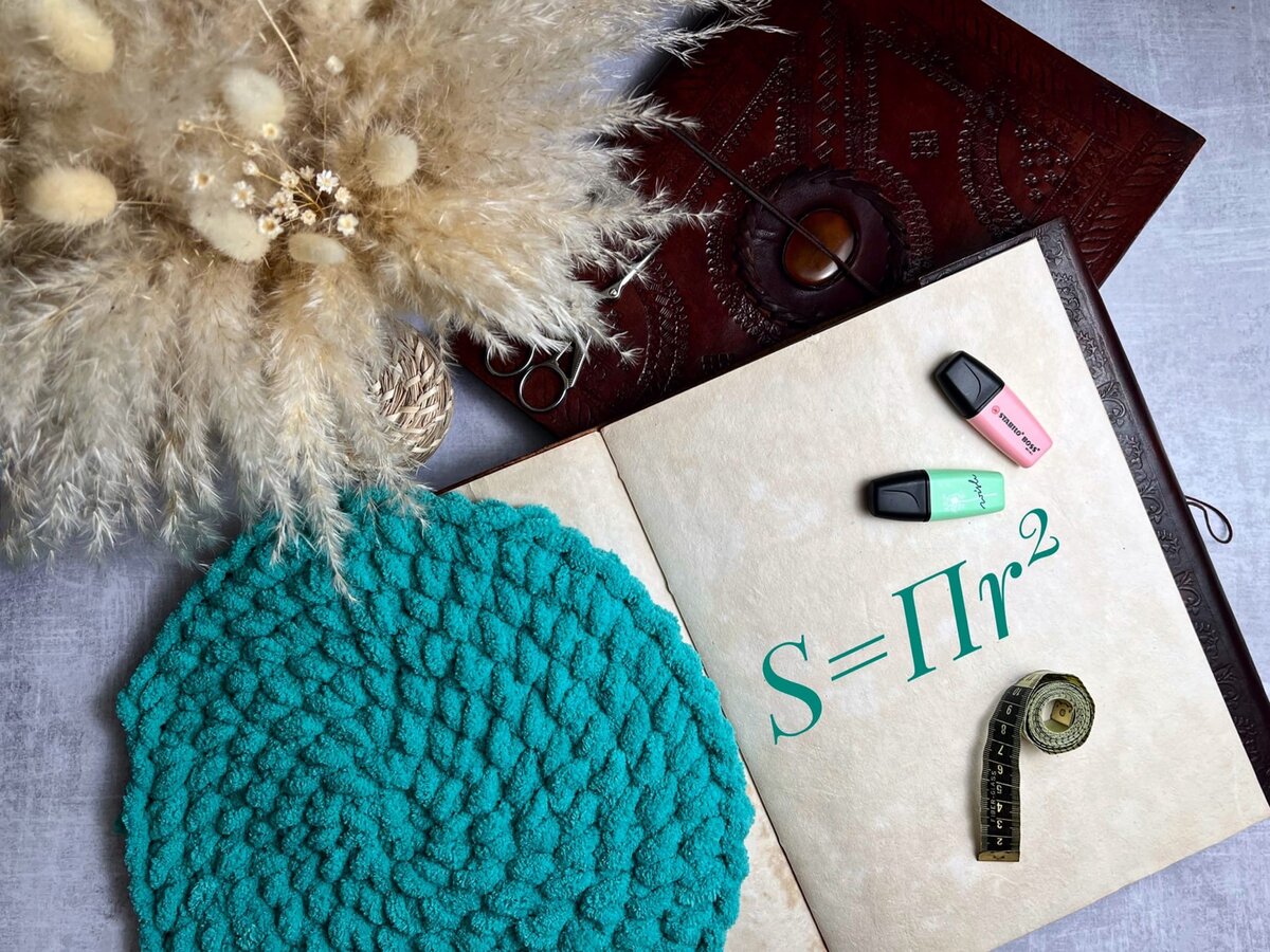Вяжем круг из одного моточка. Измеряем радиус этого круга: от центра круга до его края.