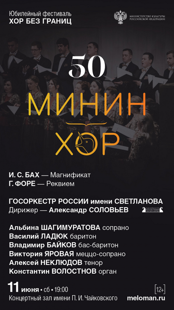 11 июня 2022 года в Концертном зале имени Чайковского Московский государственный академический камерный хор (Минин-хор) завершает свой юбилейный фестиваль «Хор без границ», посвященный 50-летию коллектива. Купить билеты Будут исполнены шедевры духовной музыки барокко и романтизма - Магнификат И.С. Баха и Реквием Г.Форе. Магнификат - духовное песнопение, созданное на евангельский текст «Величит душа моя Господа», благодарственная молебная песнь Девы Марии, неотъемлемая часть христианского богослужения. Магнификат Баха - сочинение удивительной красоты и чистоты, исполненное света и Рождественской радости. Реквием Габриэля Форе - крупнейшее вокально-симфоническое сочинение композитора. «Форе создал единственную в своём роде Заупокойную Мессу, которая уводит нас от страха смерти в царство чуткой ясности и совершенного счастья», - написал современник Форе, астроном Карло д’Эспозито. На протяжении всей своей пятидесятилетней истории с хором Минина неизменно выступали самые выдающиеся артисты