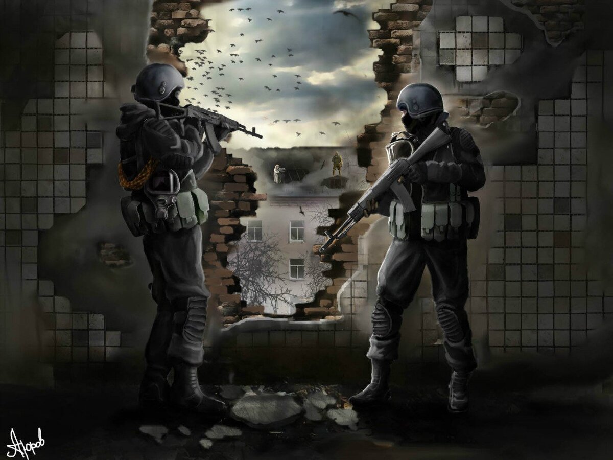 "Подъём... Они заняли первый этаж... Держать коридор..." - Ворон лежал на холодном полу, а в ушах, вперемешку с глухим звоном, стоял грохот от взрывов и стрельбы. "Подъём я сказал!" - кричал, стоя над ним, его командир. "Войт?" - выдавил сквозь стиснутые от боли зубы Ворон. "Нет, блин, мать Тереза, меньше глупых вопросов и больше движения! Пока второй этаж наш, будем выходить с окна в другом конце коридора, а оттуда в лес, и, если не хочешь оставаться тут один, вставай и двигай за Аксом!" Ворон встал на ноги и, дёрнув затвор автомата, молча встал позади бойца, осматривающего тёмный коридор. "Готов?" - обернулся тот, в ответ на что Ворон утвердительно кивнул головой. Они медленно шли, прижавшись к левой стене коридора, а по правой шла другая пара бойцов. Почти дойдя до конца коридора, они приготовились занимать лестничную клетку, как вдруг, длинная очередь из-за угла скосила пару, идущую по правой стороне. Напарник Ворона закинул за угол осколочную гранату. Как только прогремел взрыв,