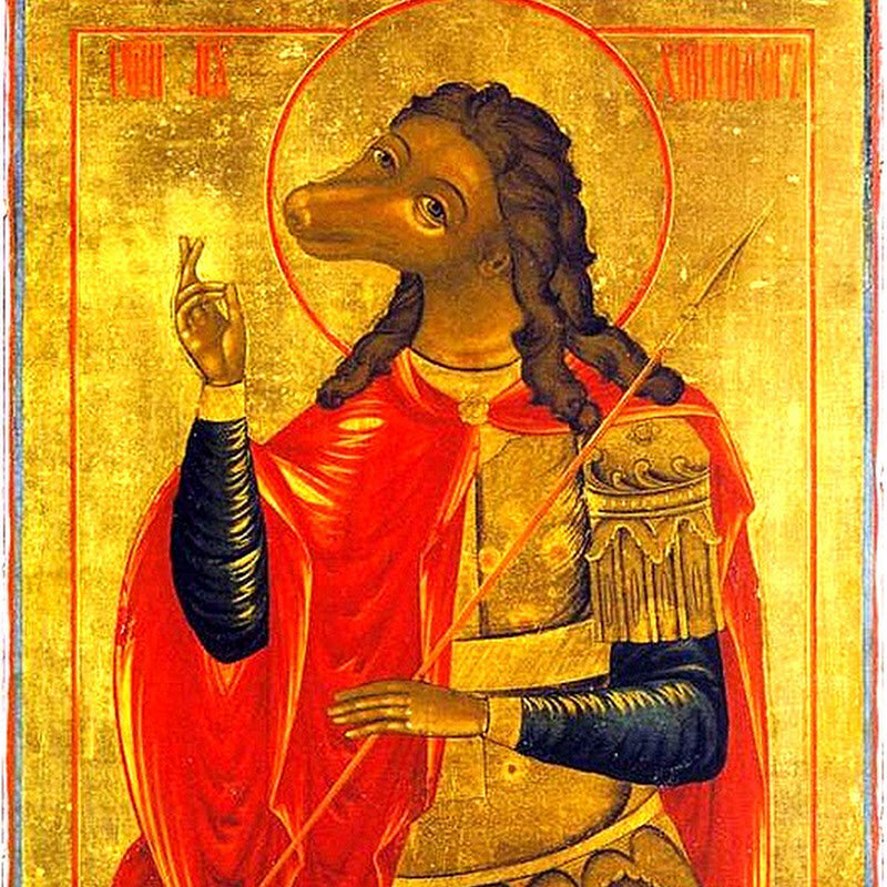 Этот святой изображается на иконах с собачьей головой. 22 мая Церковь празднует память святого мученика Христофора. По преданию он был очень красив, поэтому просил Бога сделать его безобразным, во избежание искушений. Он жил в третьем веке. Во время гонений на христиан Христофор ещё не был крещен. Но, видя страдания верующих, он обличил мучителей. Те схватили его и повели к правителю. Христофор был очень сильным физически, но не стал сопротивляться. По дороге произошли чудеса : трость Христофора расцвела сама собой, а запасы хлебов умножились. Тогда воины уверовали и приняли крещение от епископа Вавилы вместе с Христофором. Правитель просил святого отречься от веры. С целью уговорить его правитель послал к нему двух красавиц - язычниц. Но они от слов Христофора уверовали во Христа и приняли мученическую смерть. Тогда правитель стал мучить святого. Бросил его в раскаленный котёл. Он вышел оттуда невредимым. Правитель использовал множество пыток, но они не повредили святому. При это
