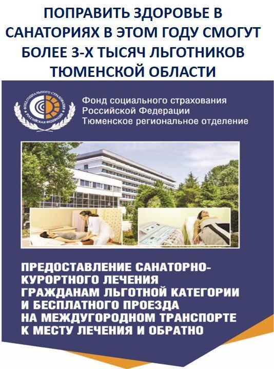 В текущем году Тюменским региональным отделением Фонда социального страхования будет выделено более 3 тысяч путевок на санаторно-курортное лечение граждан льготных категорий - это взрослые, дети и сопровождающие В настоящее время заключено 17 государственных контрактов. Планируется провести дополнительную госзакупку путевок по итогам проведения открытых торгов и с учетом профилей заболевания. Средства на санкурлечение поступают из федерального бюджета.