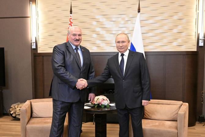 Официальная часть встречи президента Белоруссии Александра Лукашенко и его российского коллеги Владимира Путина в Сочи длилась почти 5 часов, сейчас они продолжают общение неформально. Как передает Арменпресс со ссылкой на РИА новости, об этом сообщил близкий к пресс-службе главы белорусского государства Telegram-канал "Пул Первого". "Четыре часа пятьдесят минут длилась официальная часть встречи президентов Беларуси и России. Сейчас лидеры продолжают общение неформально", - говорится в сообщении.