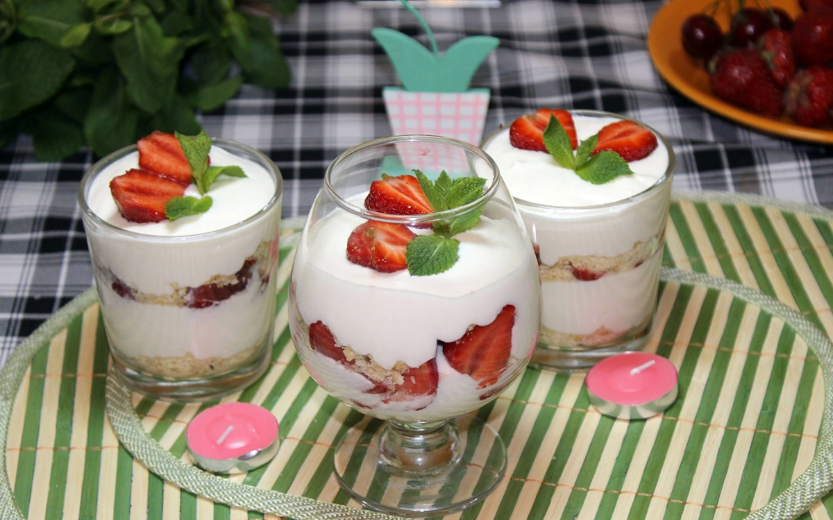 Рецепт быстрого парфе с какао, кофе и клубникой без яиц