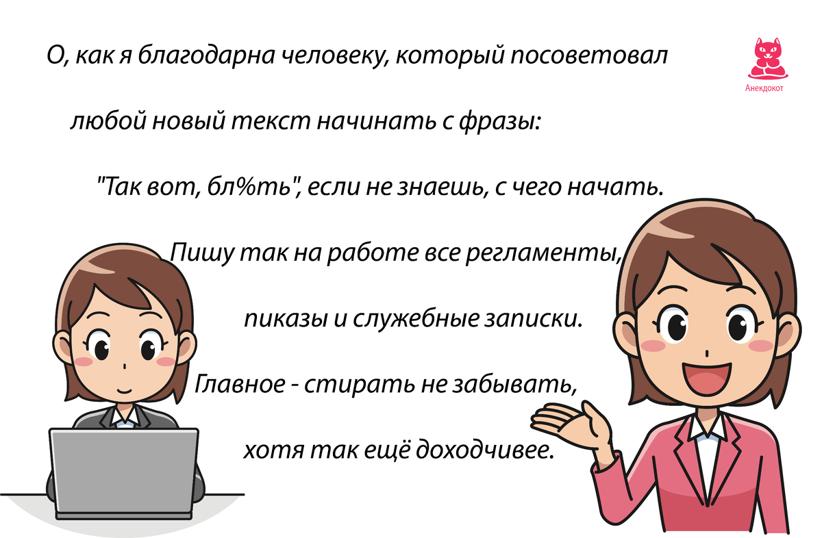 *** Налоговый инспектор женился на женщине, которая уже 6 раз побывала замужем. В первую брачную ночь она ему вдруг и говорит: - Любимый, ты только поосторожнее, пожалуйста, я ведь девственница. Мужик опешил так что глаза на лоб полезли: - Это как так? Ты же 6 раз была замужем! - Видишь ли, вот в чем дело… - Мой первый муж был психиатром - он только разговаривал о сексе; - Второй муж был гинекологом - он только все осматривал; - Третий муж был филателистом - он любил исключительно лизать; - Четвертый муж был менеджером по продажам - он говорил, что знает, что это за товар, но не знает, как им пользоваться; - Пятый муж был чиновником - он говорил, что знает, как все надо делать, но не совсем уверен, что это в его компетенции; - Шестой муж был электронщиком - и он говорил, что если все работает нормально, то не нужно лишний раз трогать. - Вот затем я и вышла за тебя, налогового инспектора, чтобы быть уверенной, что уж ты-то меня несомненно в%б%шь! *** Стоит около обочины бабушк