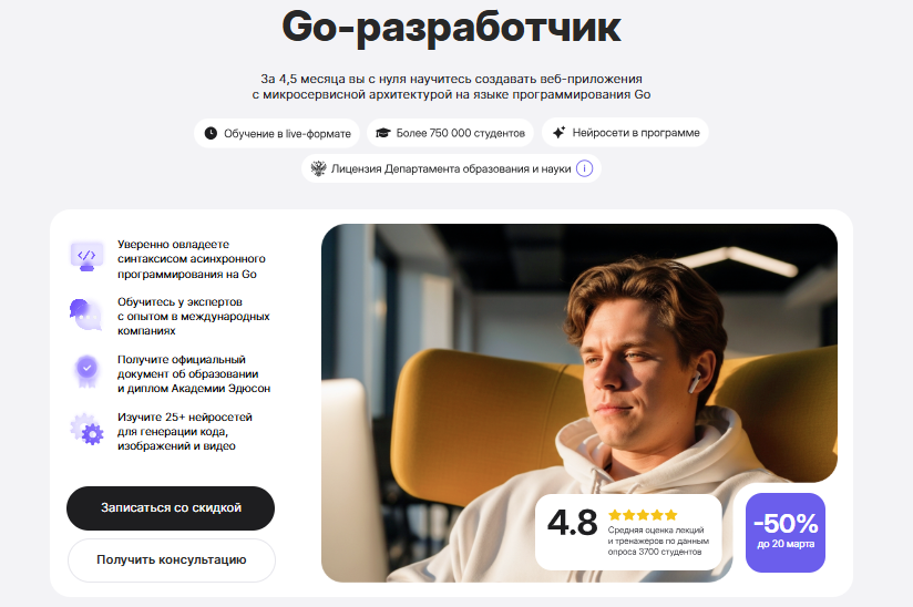 1. Профессия «Go-разработчик» от Академии Эдюсон (сайт школы)