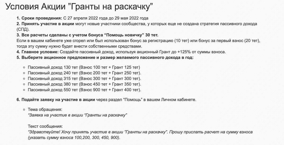 Суперкопилка остается одним из фундаментальнейших направление в моем портфеле. С некоторыми перерывами я работаю с проектом уже около 8 лет. Несмотря на некоторые особенности маркетинга (не путать их с полноценными рестартами), на текущий момент каждые 2 недели вывожу пассивную прибыль. Если вы посмотрите мои последние ролики на старом Ютуб канале, то ознакомитесь со стратегией, по которой мы работаем с наставником: это "Закольцовка". Вообще весь маркетинг в СК направлен на принуждение участников к регулярным реинвестам. Кто-то скажет, что это плохо, ведь хочется единожды внести деньги и лишь получать чистую прибыль. Но лично я на практике убедился в обратном. "Грант" - что он из себя представляет? Дело в том, что Суперкопилка дает некий стартовый бонус в "тетах". Его нельзя вывести на свой кошелек или использовать по собственному усмотрению. Зато можно "приплюсовать" к собственной инвестиции и использовать для увеличения пассивного дохода по стратегии. Кстати говоря, стратегию вам авт