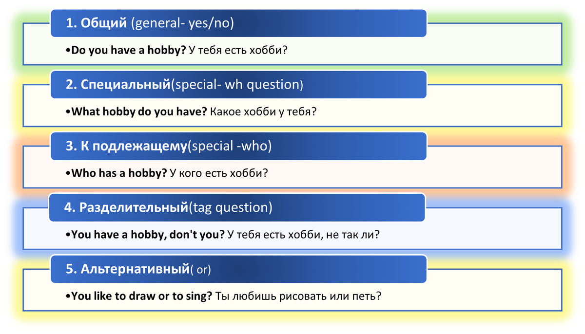 1. Общий – вопрос ко всему предложению. Начинается с помощника.