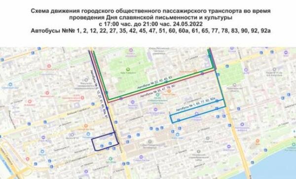 Изменения коснутся около 30 маршрутов В Ростове 24 мая в связи с проведением мероприятий, посвященных Дню славянской письменности, с 17:00 до 21:00 изменится схема движения автобусов и электротранспорта, сообщили в пресс-службе мэрии города.