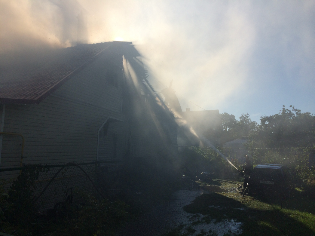 Пожар в жилом помещении из-за большого количества горючих материалов распространяется мгновенно. Если момент возгорания произошел практически на ваших глазах, у вас по всему дому расставлены средства пожаротушения или под рукой оказались их заменители, и вы при всем этом не растерялись и вступили в бой с огнем - то у вас есть шансы. В противном случае остается вызвать пожарную бригаду, успеть схватить что-то ценное и важное и наблюдать за последствиями. Если машины приедут быстро, оперативно размотаются и подключатся к пожарным гидрантам, считайте, что вам крупно повезло. В моем случае бригада прилетела через 5 минут после вызова, но второй этаж выгорел полностью, а первый пришел в негодность, приняв на себя несколько тонн воды в процессе тушения пожара.