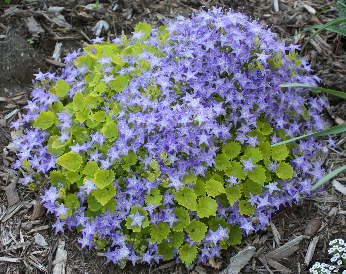 Это травянистое почвопокровное многолетнее растение. Цветение колокольчика, начинаясь в июне, растягивается на два с половиной месяца. Его стебли очень нежные и ломкие, но это не мешает растению сильно разрастаться. На длинных ползучих побегах с середины лета (а где-то и раньше) появляются многочисленными голубые, лиловые или белые цветки-звездочки Ø 3-4 см. Если не давать колокольчику расползаться, то можно получить шарообразный кустик высотой до 25-30 см. Колокольчик гарганский ценится за обильное цветение, за которым иногда и листьев не видно. А за быстрый рост колокольчик можно высаживать в каменистых садах, альпинарии, цветниках, где требуется прикрыть оголенные участки земли. Колокольчик гарганский легко перенесет затенение, хотя в полутени цветение не будет таким буйным. Сильной морозоустойчивостью колокольчик гарганский не отличается. Но вымерзая частично, он прекрасно восстанавливается. Выращиваете колокольчики? Делитесь сортами в комментариях👇 Подписывайся на канал ✍️ чтобы