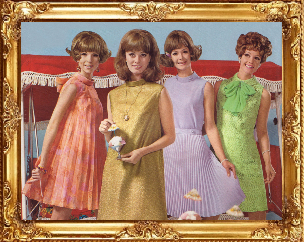 Ситец, шёлк и крепдешин - в бабушкин сундук! В эру НТП химпромышленность изобрела ткани, освобождающие людей от половины домашних хлопот, - не надо замачивать, гладить, подсинивать, но все вещи годами как новые! Да такие яркие, с фактурной поверхностью! К тому же, из искусственного текстиля легко кроить и шить самостоятельно - он не сдвигается в работе, срез не осыпается. Его износостойкость близка к нулю. Важные качества: на синтетике не размножаются бактерии; кримплен и лавсан не токсичны. Кримплен крупным планом: Более полувека назад повальное увлечение "синтетикой" было общемировым явлением, считалось показателем прогрессивности. Из кримплена (а позднее - и лавсана) шили абсолютно всё: платья, брюки, жакеты, купальники, пальто, мужские костюмы. Такие за рубежом: А в Советском Союзе модели проще и однотипные: И только спустя десятилетия выяснилось, что для одежды эти достижения науки - фуфлон, как то ли с сарказмом, то ли со случайным метким попаданием назвали ткань в советском филь