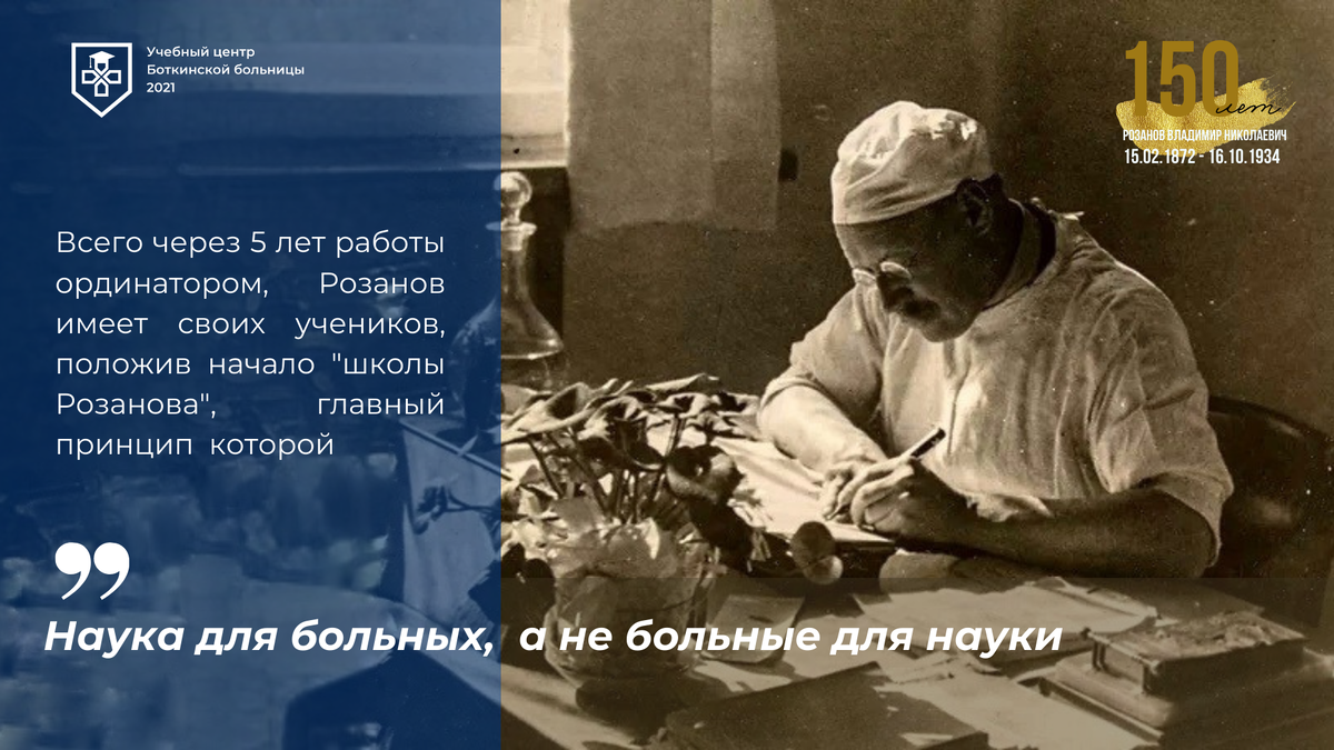 🏥 03.06.22 в Боткинской больнице пройдет 1-ая конференция молодых ученых "Розановские чтения". 🎓 Мероприятие приурочено к 150-летию выдающегося хирурга и педагога, Розанова Владимира Николаевича, оснавателя "Школы Розанова". 👩⚕️👨🎓 Приглашаем к участию в мероприятии молодых специалистов - студентов медицинских ВУЗов, ординаторов и аспирантов. ℹ️ Подробная информация и программа мероприятии размещены на https://rozanov.moscow.surgery/