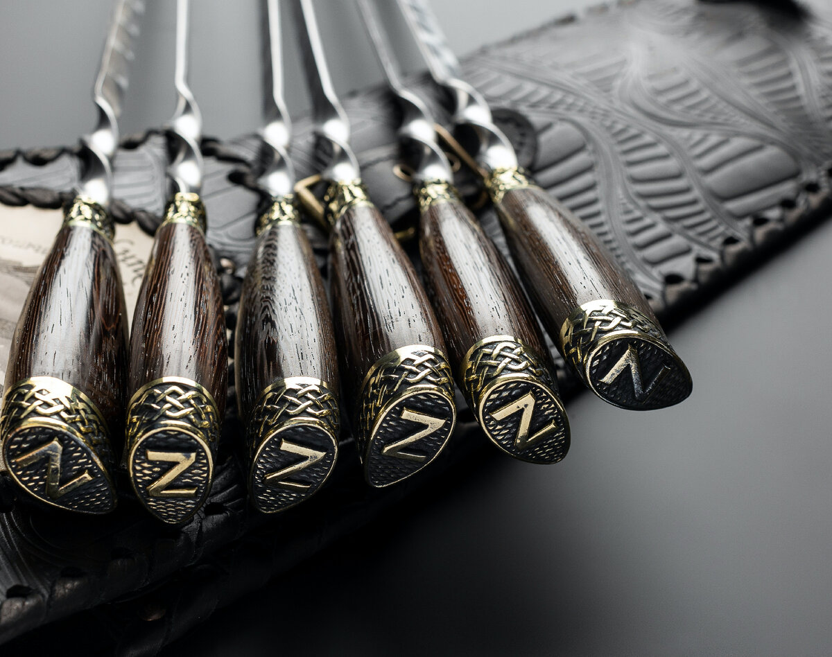 Подарочный набор шампуров с актуальным названием - это шесть крутых шампуров с мощной рукояткой из древесины венге и элементами художественного литья. Лозунги, не оставляющие никого равнодушным, украшают кожаный чехол комплекта. Также в набор входит туристический нож "Охотник" и вилка для снятия мяса, выполненные в едином победном стиле. Акцент подарочного комплекта шампуров - мощь и основательность. Рабочая часть длиной 550 мм изготовлена из высококачественной нержавеющей стали толщиной 2,5 мм. Грозные параметры послужат на пикнике в мирных целях! Дополнительная износостойкая обработка "(русский☺) мороз" делает шампуры надежными и долговечными. Рукоятка из натурального дерева смотрится внушительно, благодаря оформлению художественным литьем с решительно-мужественной буквой. Кто знает, тот поймет! Подарочный набор выходит лимитированной серией - успейте заказать по ссылке ниже! Заказать на официальном сайте!