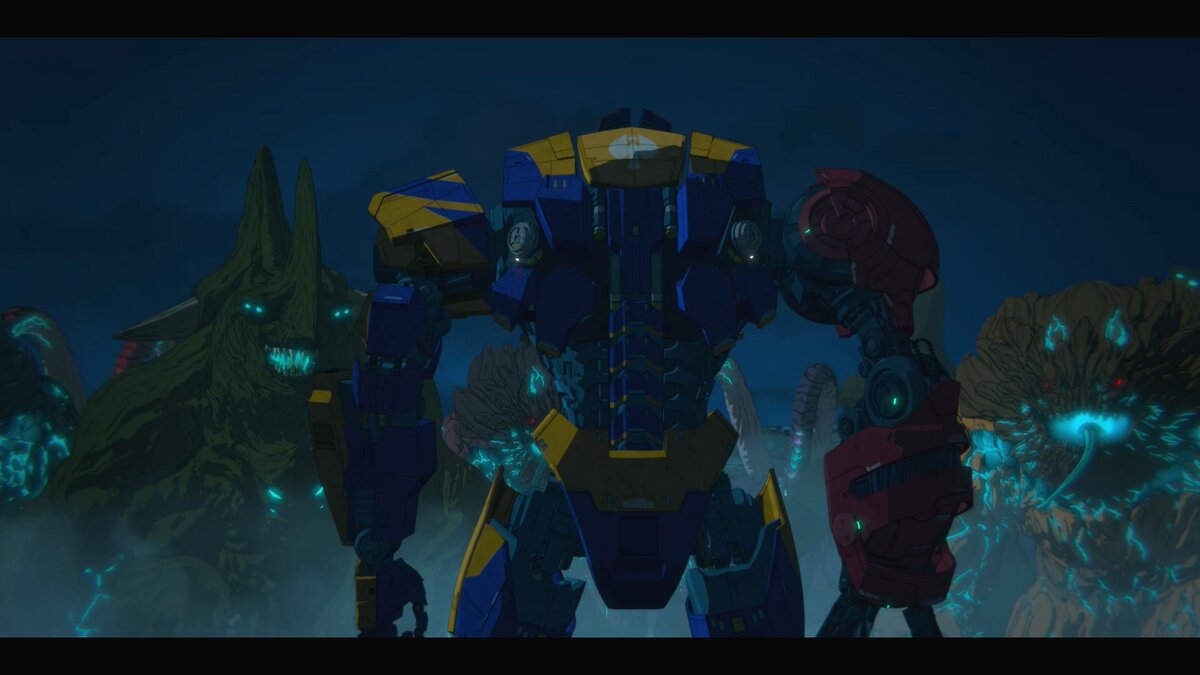 Чем ещё заняться пожилому интроверту после работы, только мультики смотреть, благо серии по 25 минут. Впрочем, "ТР: тёмная зона" - явно не для детей, слишком уж тут всё сурово. Оригинальный "Тихоокеанский рубеж" (2013) за авторством великого Гильермо дель Торо, напомню, был самой убедительной попыткой перенести на западные экраны чисто японский жанр "меха" (гигантские роботы). Я сейчас конкретно про полнометражные фильмы с живыми актёрами: кроме "Робот Джокс" (1989) и "Боевых роботов" (1996) и вспомнить-то особо нечего. Дель Торо удалось не только показать красивые сражения машин против чудовищ, но и сконструировать продуманный мир, и не перегрузить историю пафосом и банальщиной. Потом был "Тихоокеанский рубеж 2", благополучно спустивший все достижения первого фильма в канализацию. И вот теперь американо-японский мульт о двух (на данный момент) сезонах. ...Итак, идёт война с чудовищами (кайдзю), которые лезут в наш мир из каких-то параллельных реальностей. У землян есть гигантские робо