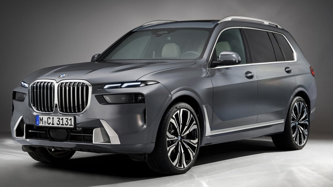 BMW X7 - это полноприводный SUV полноразмерного класса и. Он является самым большим творением BMW. Впервые автомобиль был представлен ещё в ноябре 2018 года, хотя в сети он появился в октябре того же года . Длина автомобиля составляет 5151 мм, ширина 2000 мм, высота 1805 мм. Дорожный просвет равняется 221 мм, а с помощью пневмоподвески он может подниматься на 40 мм и снижаться на столько же. Снаряженная масса машины соответствует от 2395 до 2535 килограмм в зависимости от комплектации, а полная масса варьируется от 3155 до 3290 килограмм. В салоне BMW смотрится современно и привлекательно, а качество сборки на высочайшем уровне. Компания для салона использовала дорогие материалы: натуральная кожа, алюминий, дерево. Перед водителем красуется виртуальная приборная панель 12,3 дюйма. А благодаря центральной консоли 14,9 дюймов можно управлять всеми оставшимися функциями. В автомобиле насчитываются семь мест, причём все ряды давольно таки просторные. Багажник имеет объём в 326
