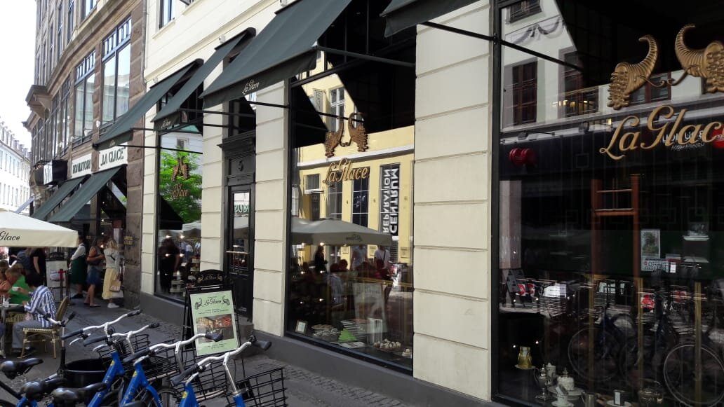 Неподалеку от Церкви Богоматери и Копенгагенского университета уютно разместилась знаменитая кондитерская La Glace, та самая, куда захаживал Ганс Христиан Андерсен. Еще издали вы поймете, где она находится - как правило, около нее есть небольшая очередь. На входе стоит девушка, раздающая меню на двух языках - датском и английском.