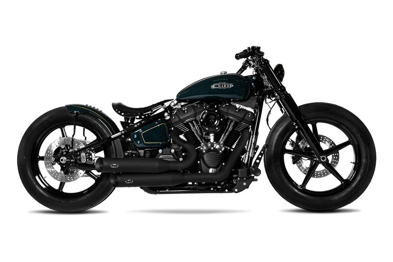 Двухколесный шедевр, изображенный на этих фотографиях, вращается вокруг варианта линейки Harley-Davidson Street Bob 2020 года и был построен Джулианом фон Охаймбом из One Way Machine в честь десятой годовщины мастерской. Ушли в прошлое стандартные обручи Street Bob, освободив место для пары пятиспицевых альтернатив Harley-Davidson Rocker C размером 19 дюймов. Поскольку оба колеса на самом деле являются передними, Джулиану пришлось модифицировать маятник донора и изготовить новую заднюю ступицу. На фото видно свежую звездочку, прикрепленную к перепрофилированному колесу Rocker C. Вся эта махина теперь приводится в движение цепной главной передачей вместо штатного ремня. Чтобы усилить тормозную способность, немецкий знаток мотоциклов модернизировал тормоза с помощью перфорированных тормозных дисков Zodiac на обоих колесах.