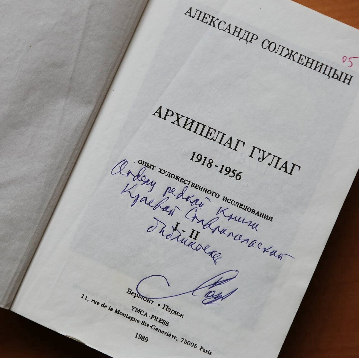 Александр Исаевич подписывал книги более двух часов, и среди счастливцев оказалась А.В. Ашихмина. Теперь книга «Архипелаг ГУЛАГ» с автографом Солженицына украшает фонд Лермонтовки.