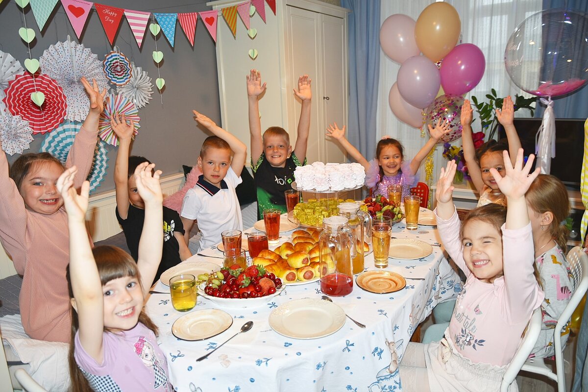 Старшая Карина (ей 15) всегда была с детьми. Задавала тон праздника, "разруливала" какие-то ситуации и отвечала за безопасность. Следила, чтобы посуда на краю не стояла. Возможно с пластиковой посудой было бы проще, но я ее не люблю, хотя есть и очень красивая-праздничная.